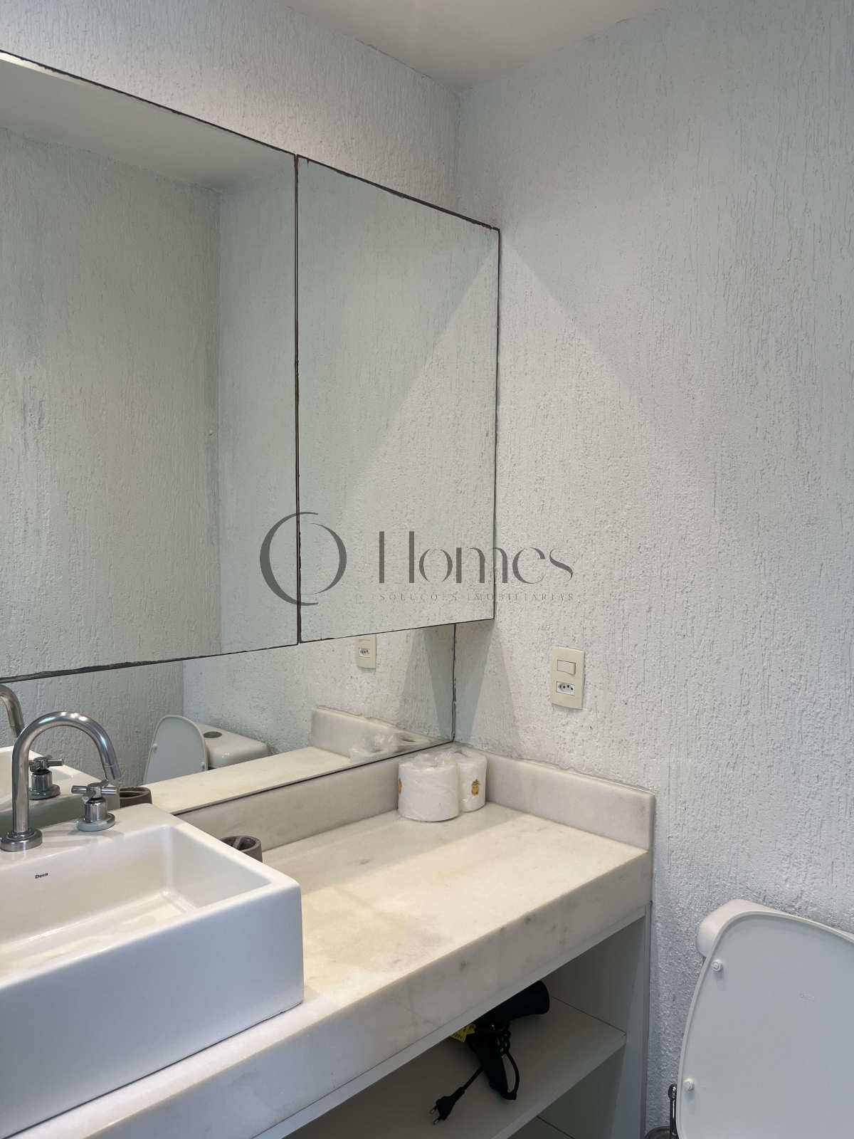- Banheiro social completo, com acabamento de alto padrão;