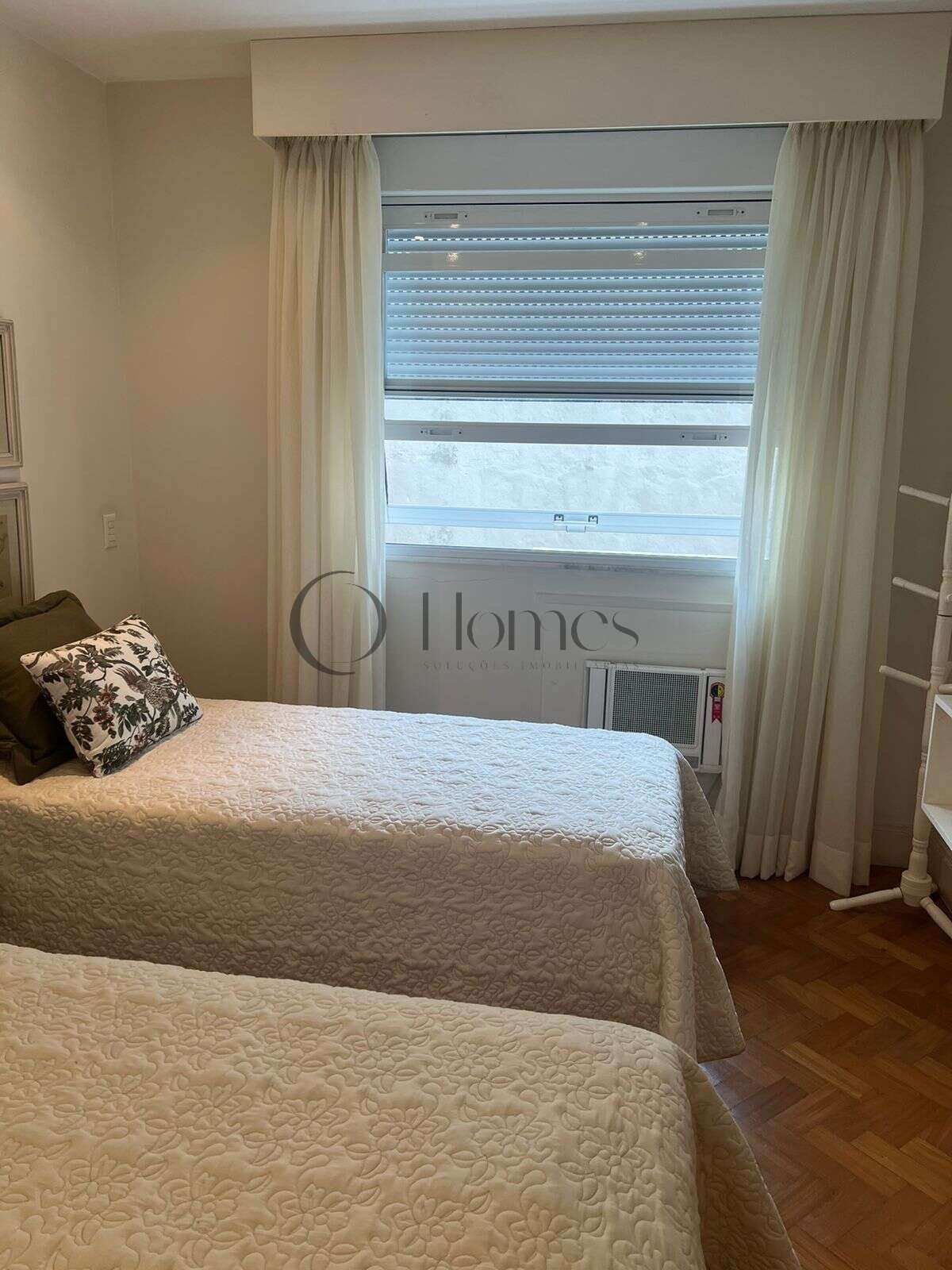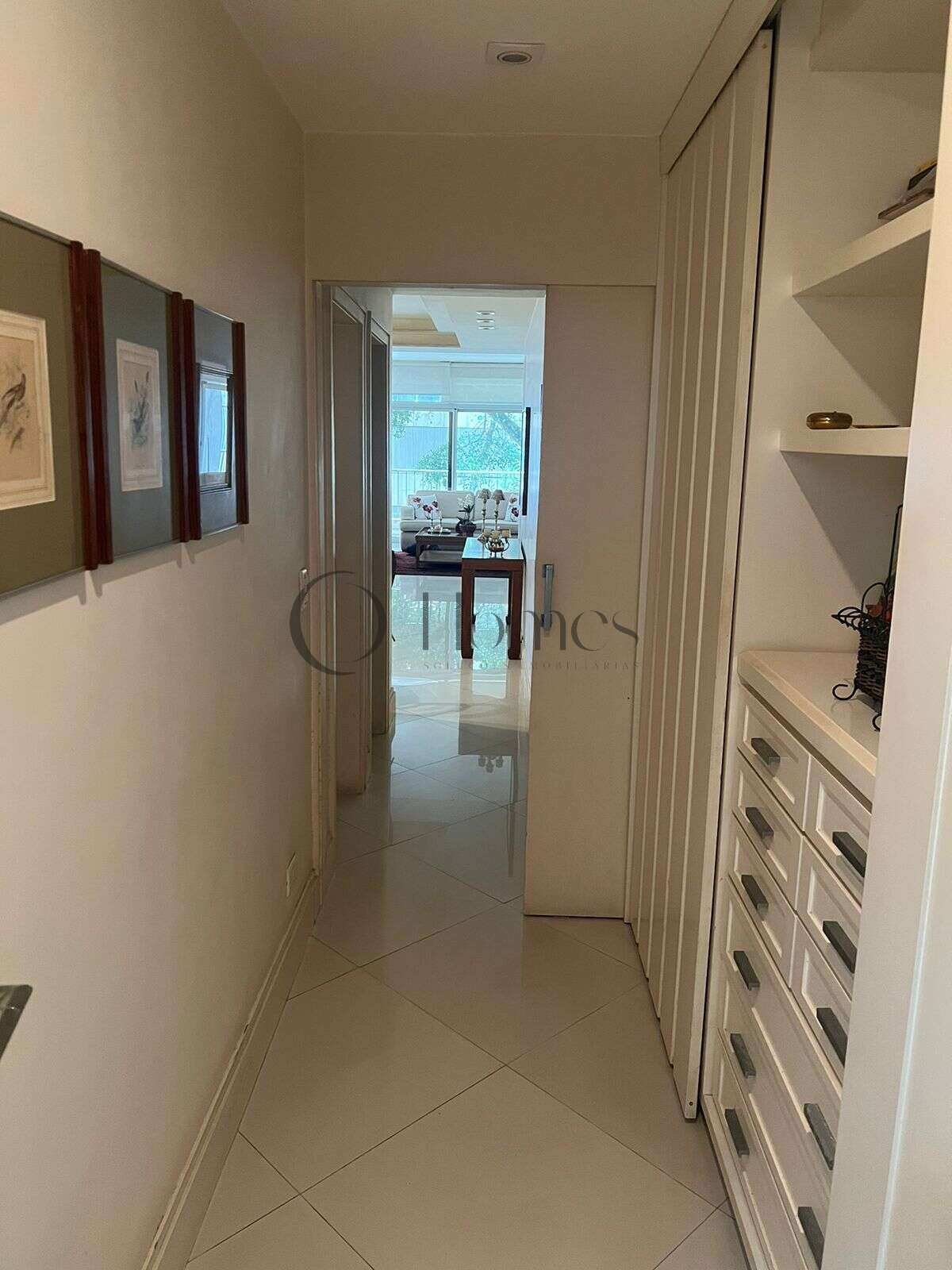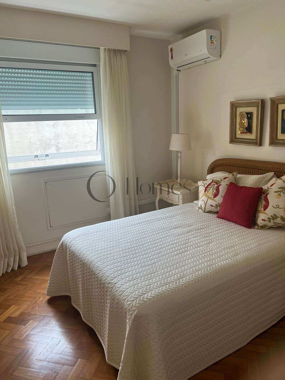 São 3 quartos (originalmente 4), sendo uma suíte, além de amplo salão com acesso à varanda, lavabo, banheiro social, cozinha, dependências completas e depósito.