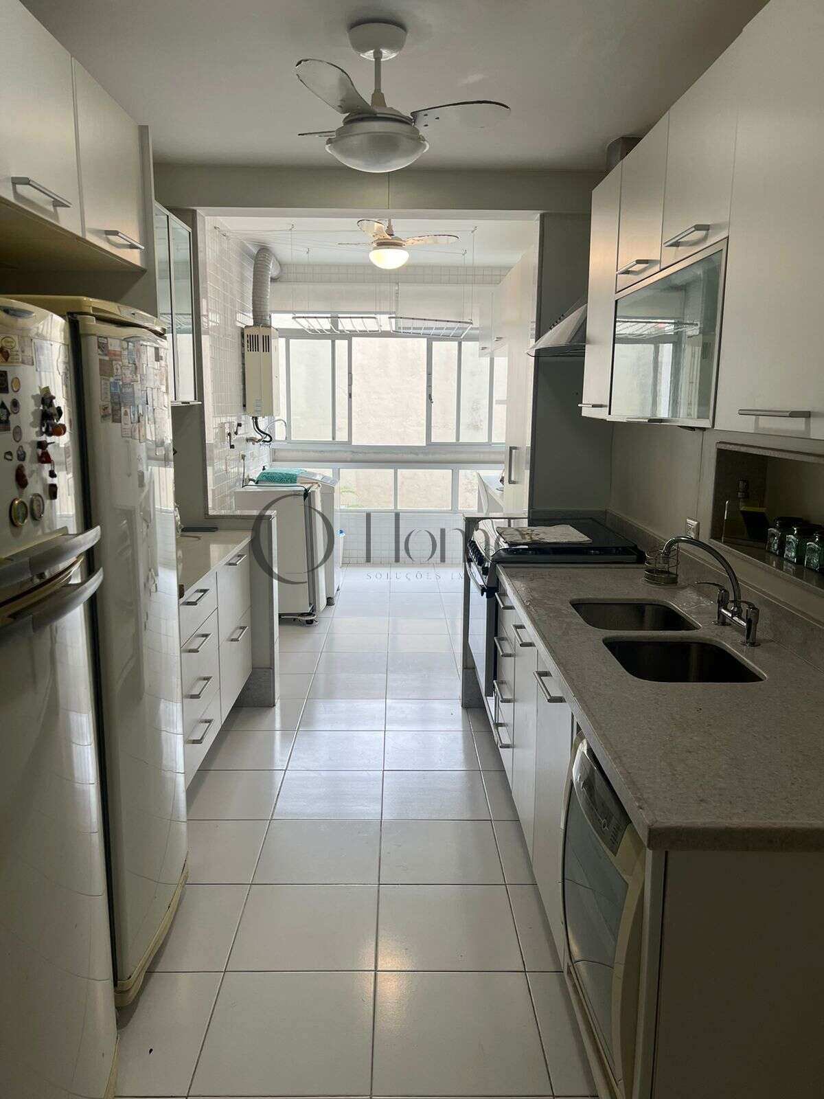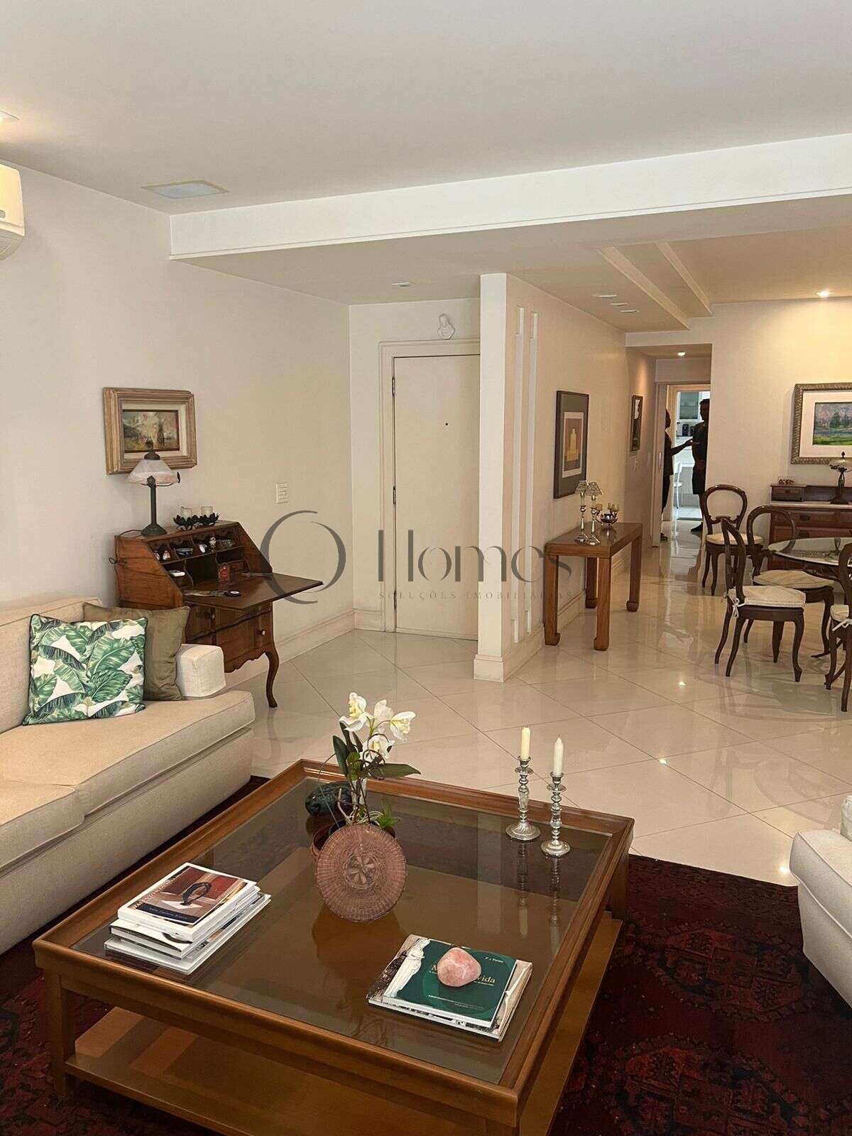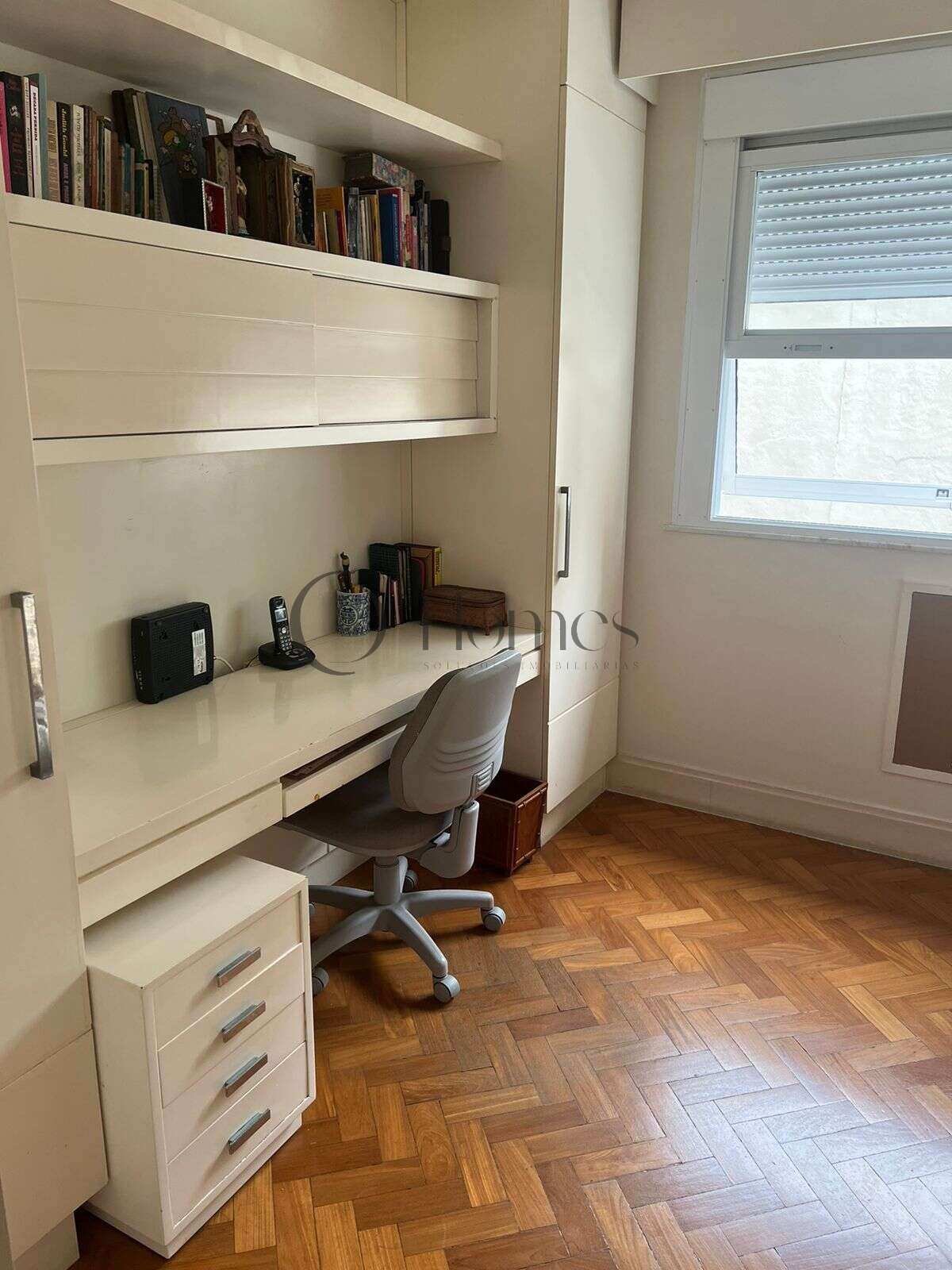 São 3 quartos (originalmente 4), sendo uma suíte, além de amplo salão com acesso à varanda, lavabo, banheiro social, cozinha, dependências completas e depósito.