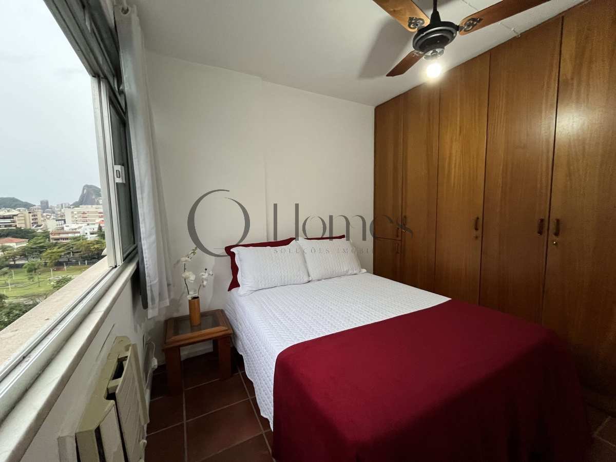 São dois quartos equipados com camas de casal, ares-condicionados novos e armários. O quarto principal dispõe ainda de espaço adequado para home office.